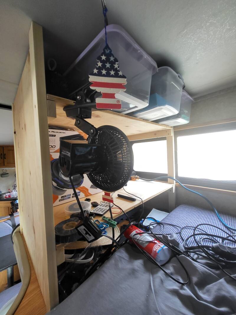 Ein Nachtisch bzw. Schrank auf dem Alkoven Bett